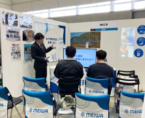 明和工業のブースにも文系・理系問わず、興味を持ってくださった学生の皆さんが訪問くださり、事業内容や働き方について直接お話しすることができました。